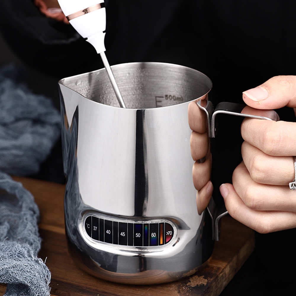 Ready 500ml/17oz Stainless Steel Milk Foaming Jug with Thermometer Pull